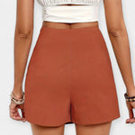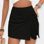 Elegante e feminino, estes calções-saias de cintura alta com um laço discreto à frente realçam a silhueta com total sofisticação. Ideais para looks de verão, combinam conforto e estilo em qualquer ocasião.