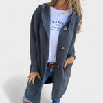 Este casaco é a peça de sobreposição perfeita para qualquer estação. Com o seu corte fluído e o material de malha macia, combina conforto e estilo. Seja com jeans, vestidos ou looks de trabalho que completam qualquer outfit.