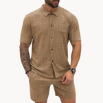 Conjunto de Camisa e Calções – Textura Retro em Malha e Movimento Fácil