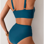 Este fato de banho combina elegância com uma cintura subida favorecedora que disfarça suavemente a barriga. O design sofisticado, com pregas delicadas, confere um visual maduro e elegante. O corte confortável e as alças ajustáveis fazem-na sentir-se confiante e livre – perfeito para qualquer dia de verão à beira da água.