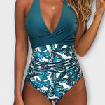 Rosa - Fato de banho elegante com decote em V para mulher