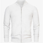 Este sweater com fecho total apresenta um zíper de comprimento total que facilita o vestir e despir. A construção utiliza uma mistura suave que proporciona calor e um toque confortável. O design com zíper permite que a peça se abra completamente ou se feche até ao pescoço para maior cobertura.