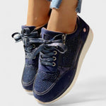 Estes ténis ortopédicos foram pensados para quem procura o equilíbrio perfeito entre conforto, apoio e estilo. Com design moderno e detalhes discretamente brilhantes, adaptam-se a vários looks sem comprometer a saúde dos pés.
