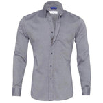 A modelagem permite fácil movimento. O tecido respira e cai sem rigidez excessiva. As costuras são posicionadas para limitar o volume nos ombros e nas axilas. O colarinho mantém-se no lugar e conserva a sua forma ao longo do dia.