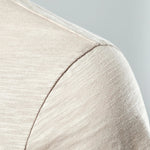 O tecido é uma mistura de malha suave que oferece leve respirabilidade e um estiramento gentil. A construção em malha ajuda a peça a manter a sua forma e reduz as rugas durante o uso. As costuras são posicionadas para reduzir o atrito e manter uma silhueta suave.