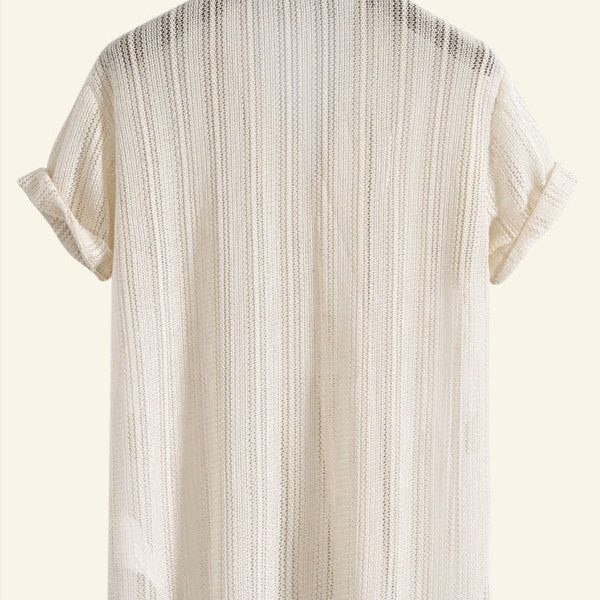 Camisa - Colarinho de Lapela e Manga Curta Listrada Respirável