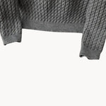 O suéter de gola redonda é feito com uma malha chunky de 3 gauge. A malha confere estrutura à peça e um leve estiramento. Os acabamentos canelados na gola, punhos e barra ajudam o suéter a manter a sua forma e a assentar de forma elegante nas bordas. A mistura de fios é projetada para ser suave ao toque da pele, mantendo a durabilidade com o uso regular.
