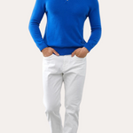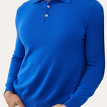 O design apresenta uma gola polo clássica e uma pala de botões que criam um decote arrumado. As mangas e a bainha caneladas ajudam a peça a manter a sua forma durante o uso. O sweater é fácil de sobrepor sem adicionar volume e combina com uma variedade de peças do guarda-roupa.