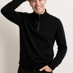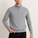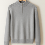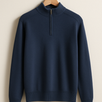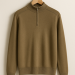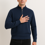 Pullover de Malha - Meio Zíper com Colarinho Alto e Stretch Flexível