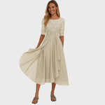 Delicado, gracioso e feito para se destacar — o Clementina combina renda trabalhada com chiffon fluido para uma beleza intemporal. Com mangas semi-transparentes, corpete bordado e saia suavemente drapeada, é a escolha perfeita para casamentos, eventos à noite ou celebrações especiais.
