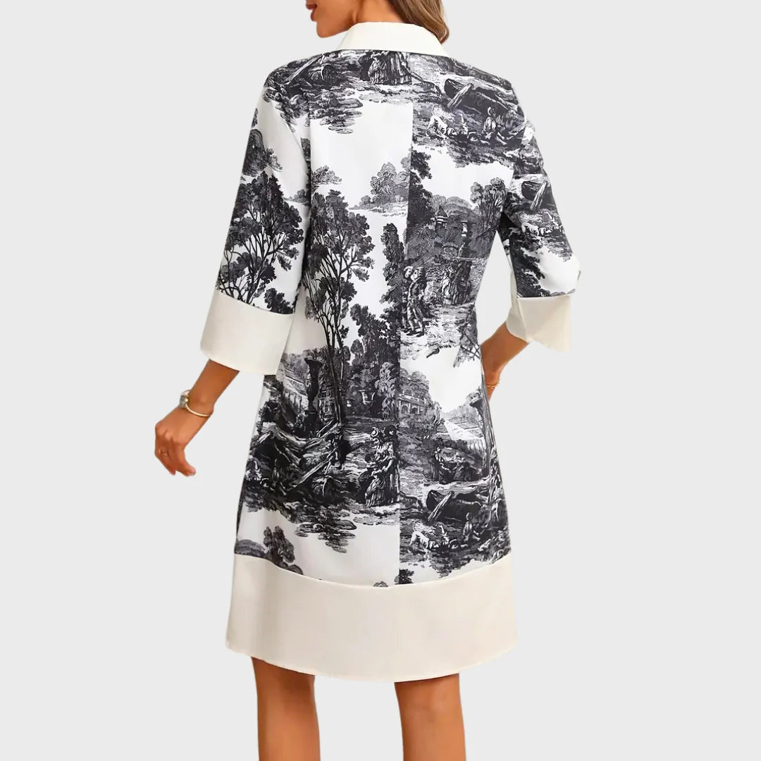 Abraça o charme intemporal com o vestido túnica curto Josefina, apresentando elegantes padrões inspirados em arte vintage e uma silhueta descontraída. Este vestido combina com facilidade a sofisticação clássica com conforto contemporâneo, tornando-se a escolha perfeita para passeios casuais, brunches ou escapadelas à beira-mar. O decote com colarinho e as mangas largas adicionam estrutura sem comprometer o conforto.