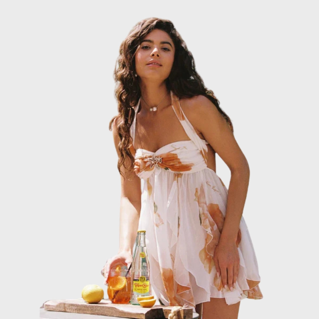 Leve, delicado e naturalmente feminino – o Vestido Margarida é o aliado perfeito para almoços de verão, festas no jardim e tardes douradas. Com um estampado floral suave, decote halter e camadas fluídas em chiffon, este vestido capta a leveza e o encanto dos dias quentes com um toque de romance.